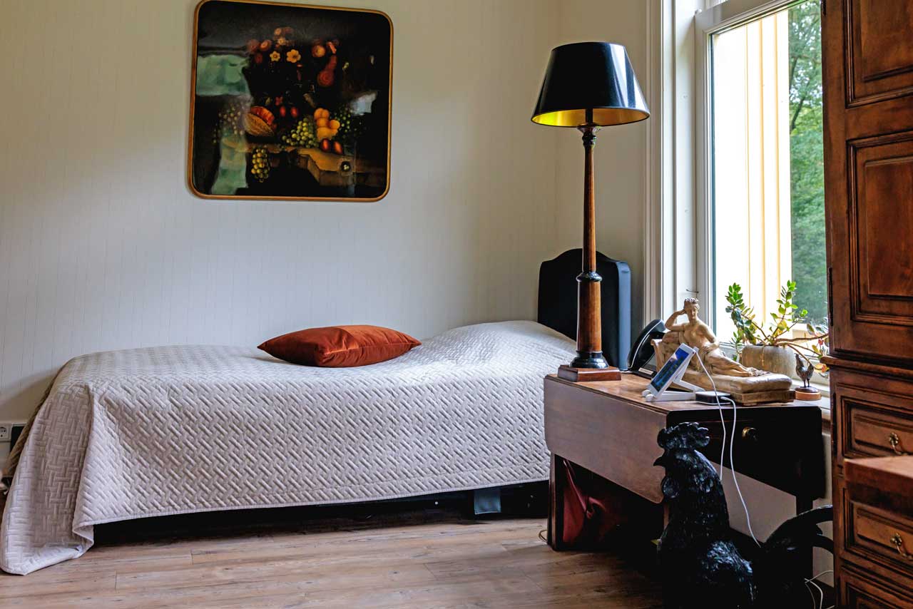 Er zijn genoeg gezamenlijke ruimtes in ons Woonzorghuis. Gezellig samen eten in de serre, genieten van een film of muziek, of rustig zitten in een knus nisje, aan de leestafel of bij de warme haard in de huiskamer. Zonder dat we het benadrukken, houden we in de woonomgeving rekening met de belevingswereld van mensen met dementie. De inrichting, kleuren en materiaalgebruik zorgen voor houvast, herkenning en veiligheid.